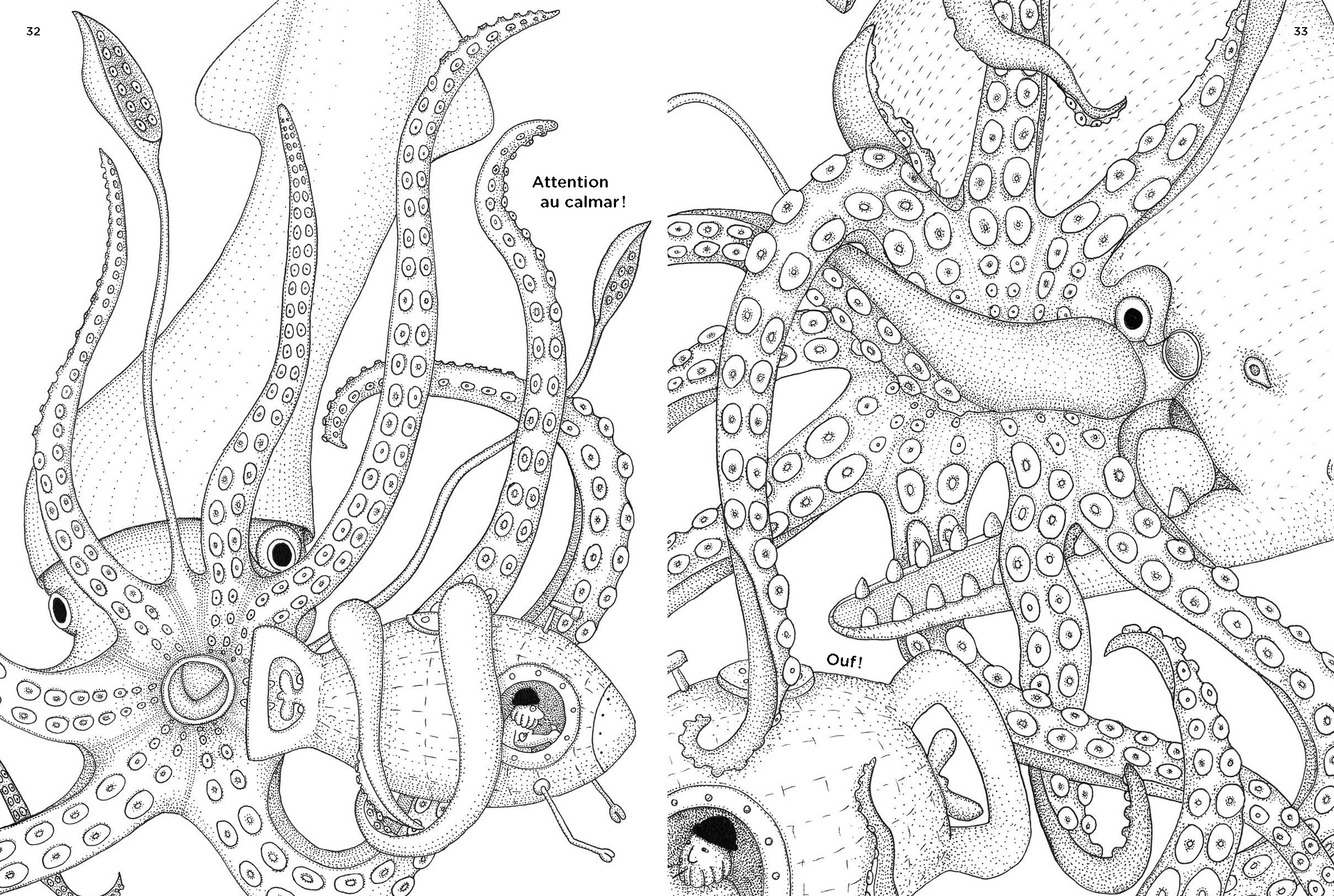 • Un double niveau de lecture permettra aux lecteur·trice·s plus aguerri·e·s d’en apprendre davantage sur le monde sous-marin et ses étranges habitants, avec un second récit plus détaillé et didactique à la fin de l’album.