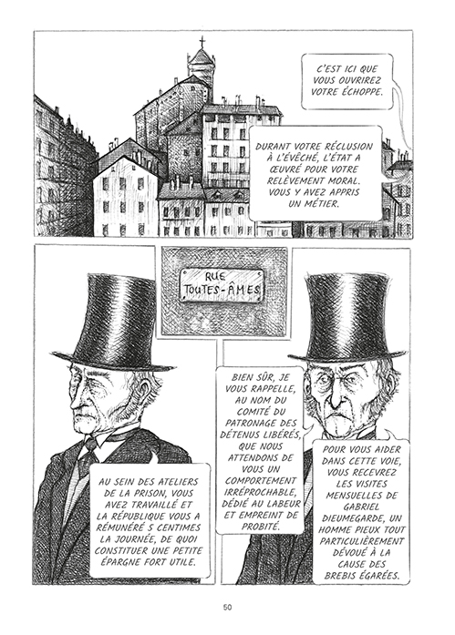 L’évocation de la société genevoise calviniste est un autre point fort de l’album. L’autrice la décrit sans cliché mais égratigne au passage une bourgeoisie qui s’assigne une mission philanthropique auprès de ces « damnés de la terre ». Ils survivent dans une Genève qui apparaît carcérale pour Solon et sa mère, prédestinés et condamnés à être enfermés dans un déterminisme social sans échappatoire.